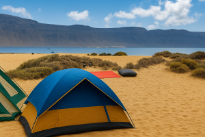 En la isla de La Graciosa , frente a Lanzarote, se encuentra la Playa de El Salado , un espacio protegido y uno de los pocos lugares donde se permite acampar en Canarias. Sus arenas doradas y aguas cristalinas la convierten en un destino único.