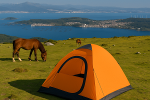El Mirador da Curota regala panorámicas espectaculares de las Rías Baixas y del Atlántico. Es un lugar perfecto para acampar y contemplar atardeceres inolvidables en Galicia.